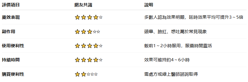 ➡ 多數網友反饋確實能延長時間,但效果視體質與心理狀態而異。
