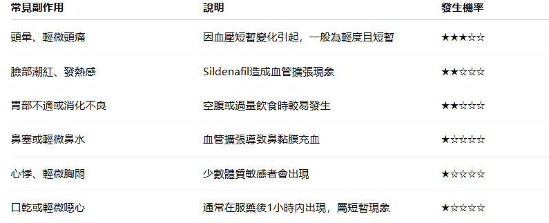 多數人反映超級必利勁副作用輕微,約在服用後1~2小時內出現,4小時內逐漸消退。
