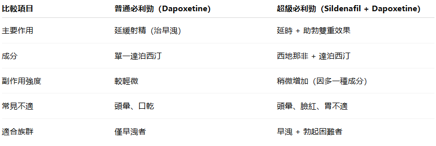 若同時有勃起困難或想要效果更全面,超級必利勁是更合適的選擇。