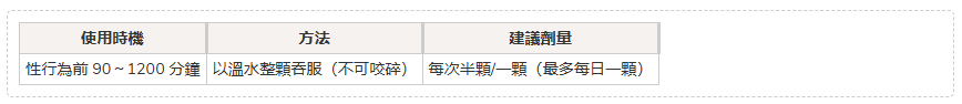 建議第一次使用時可先從半顆開始,觀察身體狀況再調整劑量。