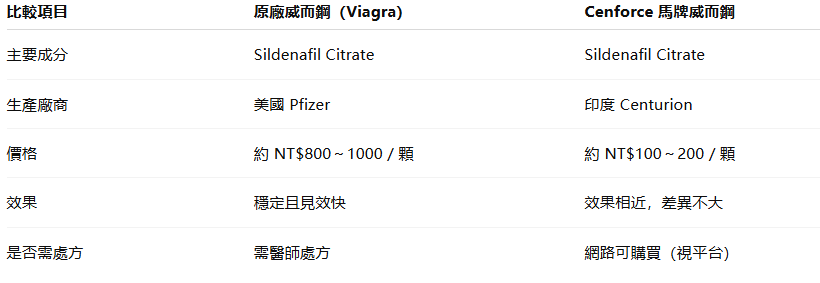 👉 換句話說,Cenforce 威而鋼 是「學名藥版本」。