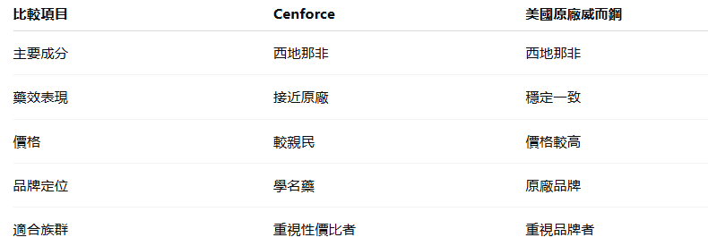 六、Cenforce 與美國原廠威而鋼的差別比較