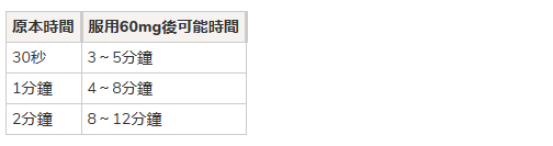 服用 60mg 後:約延長至 3~5分鐘